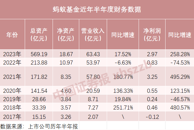 蚂蚁基金上半年净利润逆势狂增258.28%,达到2.97亿元,实现营收63.43亿元,同比增长17.52%。