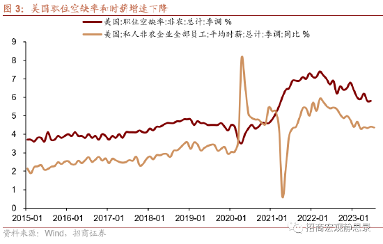 2)关于就业,劳动力市场可能并不及此前数字反映的那么强劲。25-64岁劳动力参与率提升以及移民人数回到疫前水平令劳动力供应增加;职位空缺呈下降趋势;平均每周工时已下降到疫情前范围底部,说明劳动力市场逐渐正常化;预计劳动力市场的再平衡将会继续。另一面,本周三美国劳工部大幅下修30.6万就业人口,就业市场并不及此前数字显示的那么强劲。