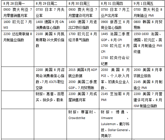 本周美国将公布8月非农就业人口和PCE,或对9月美联储的政策产生直接影响。