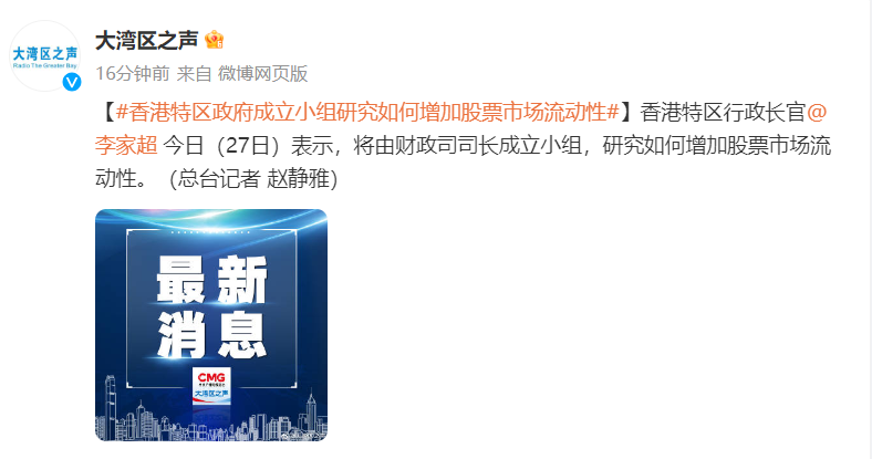 香港特区行政长官李家超今日(27日)表示,将由财政司司长成立小组,研究如何增加股票市场流动性。