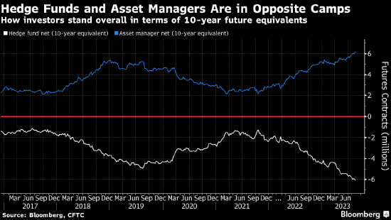 包括摩根资产管理和TCW Group在内的一些全球最大基金管理公司看到了增加看涨押注的机会。他们预计美联储的紧缩行动以及10年期收益率自6月以来约50个基点的涨幅将引发衰退,并预计2024年降息不可避免。
