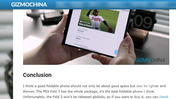 最后,外媒总结到,一款好的折叠屏手机不仅应该有好的规格,还应该更轻、更薄。小米MIX Fold 3具备了这一切,它就是最好的折叠屏手机。遗憾的是,该机不会在全球发售。