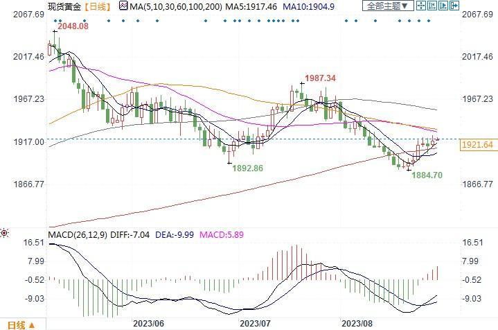 现货黄金日线图北京时间8月29日10:53,现货黄金报1922.82美元/盎司