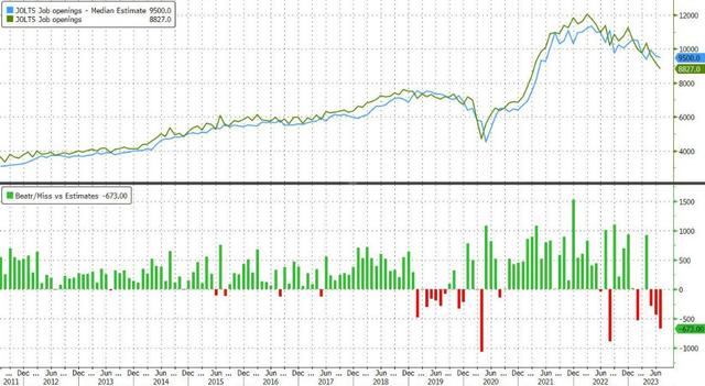 具体数据方面,美国7月JOLTS职位空缺882.7万人,为2021年3月以来首次跌破900万大关,预期为945万人,6月前值从958.2万人大幅下修至917万人。