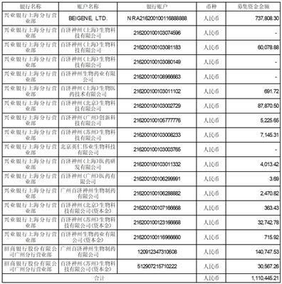 经中国证券监督管理委员会于2021年11月16日发布的《关于同意百济神州有限公司首次公开发行股票注册的批复》(证监许可[2021]3568号)批准,百济神州有限公司(以下简称“公司”)首次公开发行人民币普通股(A股)股票(以下简称“本次发行”)115,055,260股,每股发行价格为人民币192.60元,募集资金总额为人民币2,215,964.31万元;扣除发行费用后的募集资金净额为人民币2,163,015.49万元。上述募集资金已于2021年12月8日全部到位,安永华明会计师事务所(特殊普通合伙)对公司本次发行的募集资金到位情况进行了审验,并于2021年12月8日出具了安永华明(2021)验字第61119809_A03号《验资报告》。募集资金到账后,已全部存放于经公司董事会或董事会审计委员会批准开设的募集资金专项账户内。
