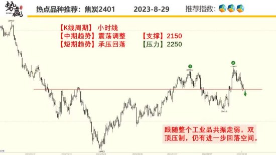 甲醇周二再次探底回升,日内宽幅震荡,市场情绪依旧悲观,焦煤也展开明显回调。甲醇4小时线处于上升通道下轨,濒临破位。1小时线圆弧顶迹象,关注2485支撑,下破可能会展开回调,短空跟随策略。