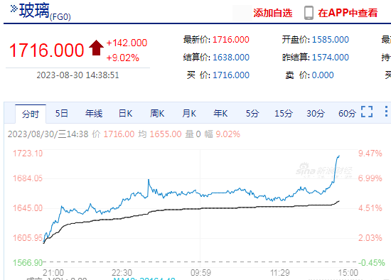 2023年8月30日,玻璃期货主力合约触及涨停。