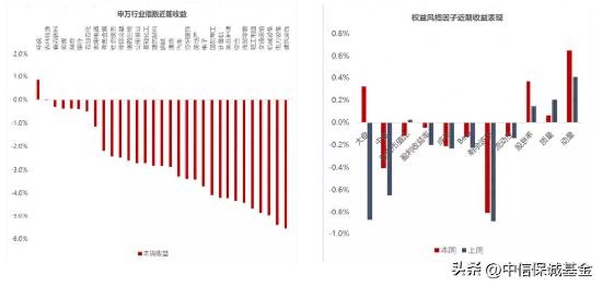 A股各行业中,上周仅环保获小幅正收益,农林牧渔、食品饮料、传媒与煤炭的跌幅相对较小,基建板块本周跌幅较大,其次为电力设备、机械设备、交通运输与轻工制造。风格因子方面,大盘、红利、动量与质量因子表现较强,成长、价值、波动、换手等因子为负收益。