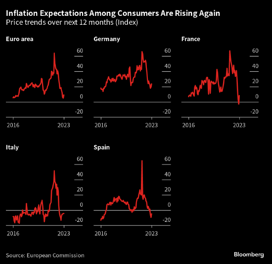 预计随后发布的欧元区数据将显示物价涨幅维持在逾5%,远高于欧洲央行2%的目标通胀水平。官员们最关注的剔除能源和食品的核心通胀的预估中值为5.3%。