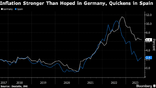 德国的通胀放缓程度低于预期,而西班牙的通胀加速,这让欧洲央行官员在判断是否再次加息时得以窥见该地区的局部价格压力情况。