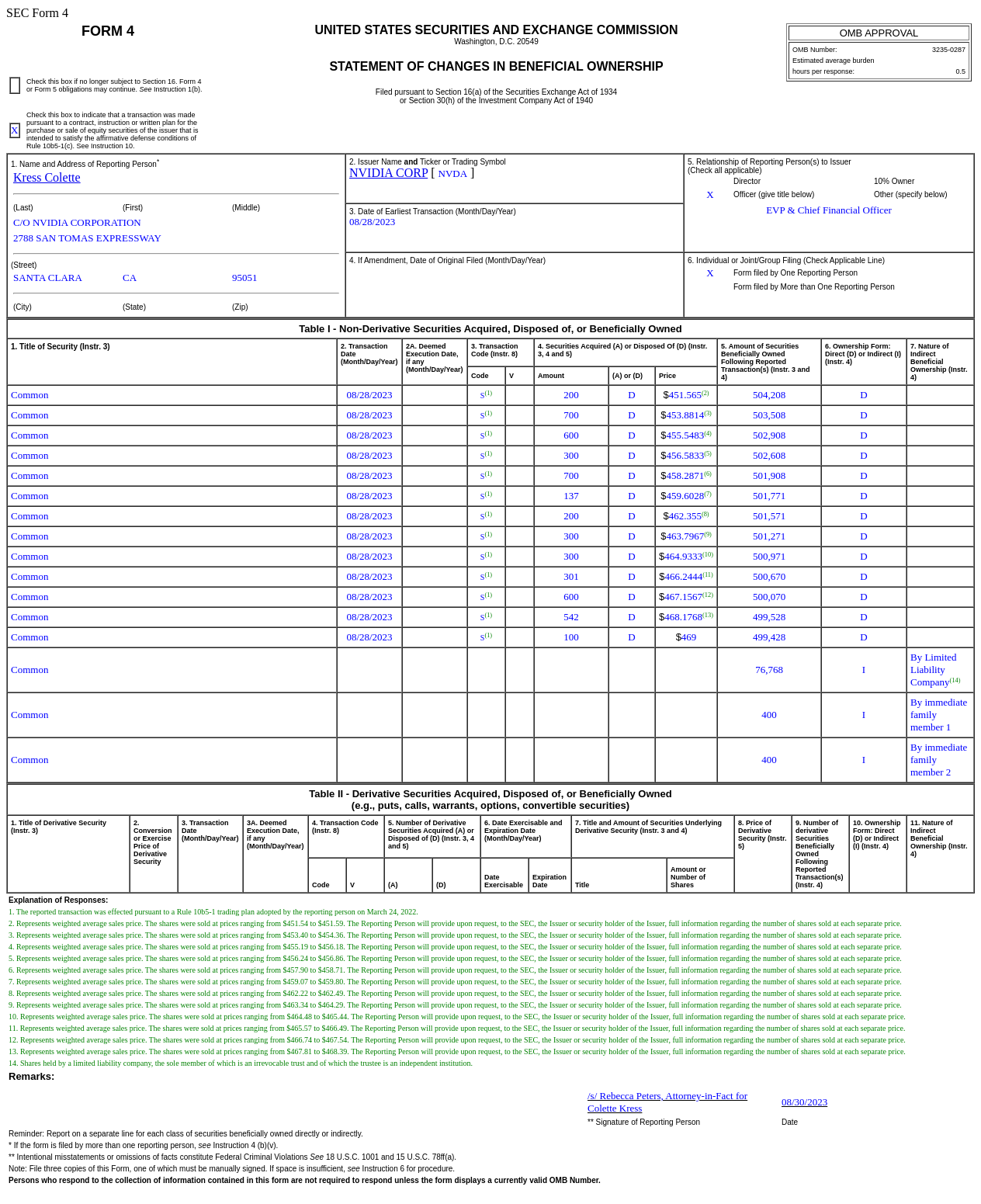 8月31日报道,根据美国证券交易委员会(SEC)8月30日披露的文件,$英伟达(NVDA.US)$执行副总裁兼首席财务官Kress Colette于8月28日以每股平均价460.7381美元售出4,980股普通股股份,价值约为229.45万美元。