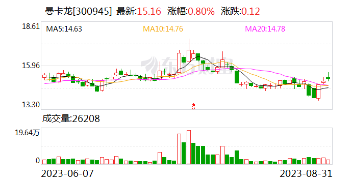 8月30日,曼卡龙(300945)发布2023年半年报。公告显示,上半年,公司业绩加速改善,实现营业收入8.29亿元,同比增长18.06%;实现归母净利润5097.65万元,同比增长42.65%;实现归母扣非净利润4425.82万元,同比增长29.39%。