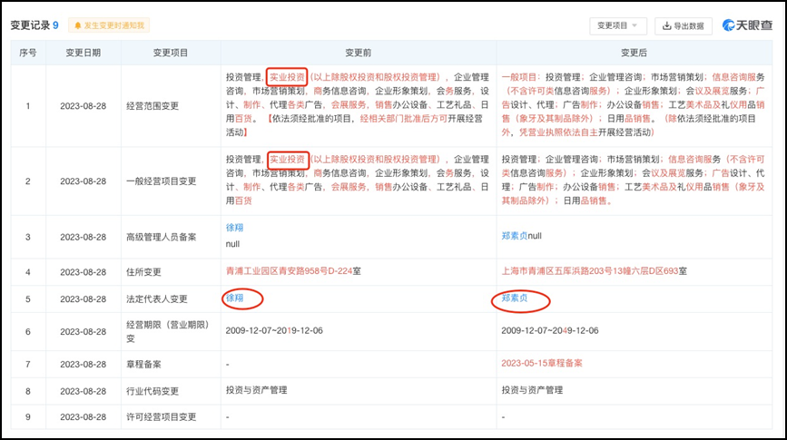 今日,查询天眼查信息发现,8月28日,上海泽熙投资管理有限公司发生工商变更:徐翔不再担任法定代表人、总经理,转而由徐翔的母亲郑素贞接任。与此同时,泽熙投资的经营范围也进行了“微调”,从中剔除了实业投资一项。(上证报)