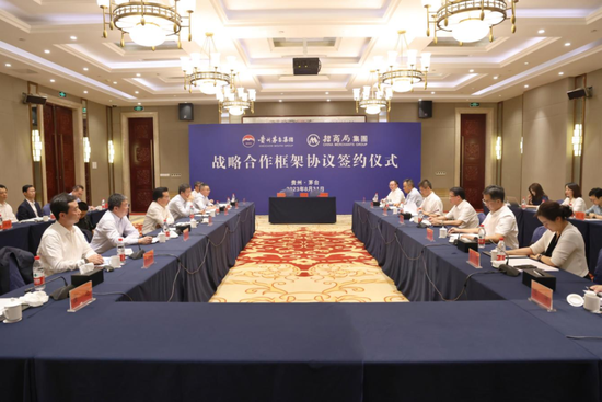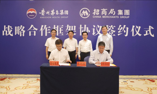 据贵州茅台消息,8月31日,茅台集团与招商局集团在茅台国际大酒店签订战略合作框架协议,双方将积极发挥各自优势,在金融、食品供应链和物流等领域进行战略合作,以高效务实、创新的合作模式,实现资源共享、优势互补,推动互利共赢和共同发展。