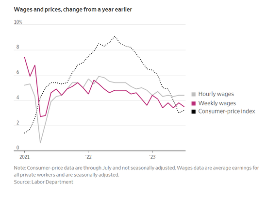 近几个月来,工资增速超过了通胀,这提振了购买力,帮助经济增长保持在强于年初预期的水平。