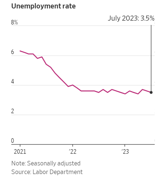 工资增长从去年的空前高点回落,证明工人的议价能力正在减弱,因为劳动力需求与供应的关系越来越一致。其他指标也显示出类似的迹象,例如被一些经济学家视为工资压力信号的辞职率在7月份回落至2019年的平均水平,低于2021年和2022年创下的历史高点。