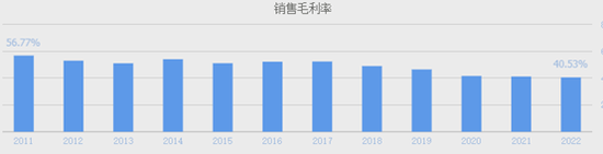 拉长时间段来看,大豪科技的颓势早就显现了。2011年,大豪科技毛利率高达56.77%,但2022年,已降至40.53%。2023年上半年,进一步下降至39.21%。