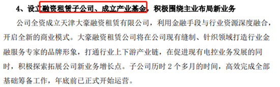 充当壳资源失败后,大豪科技开始谋求新业务。只是一家实体企业,设立融资租赁子公司、成立产业基金,似乎多少有点“不务正业”的意思。而这项业务,自然也未见披露实际收入。