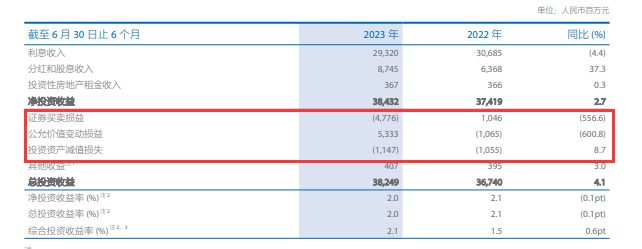 上半年净投资收益283.62亿,与去年同期基本持平,总投资收益314.86亿,下降2.65%。