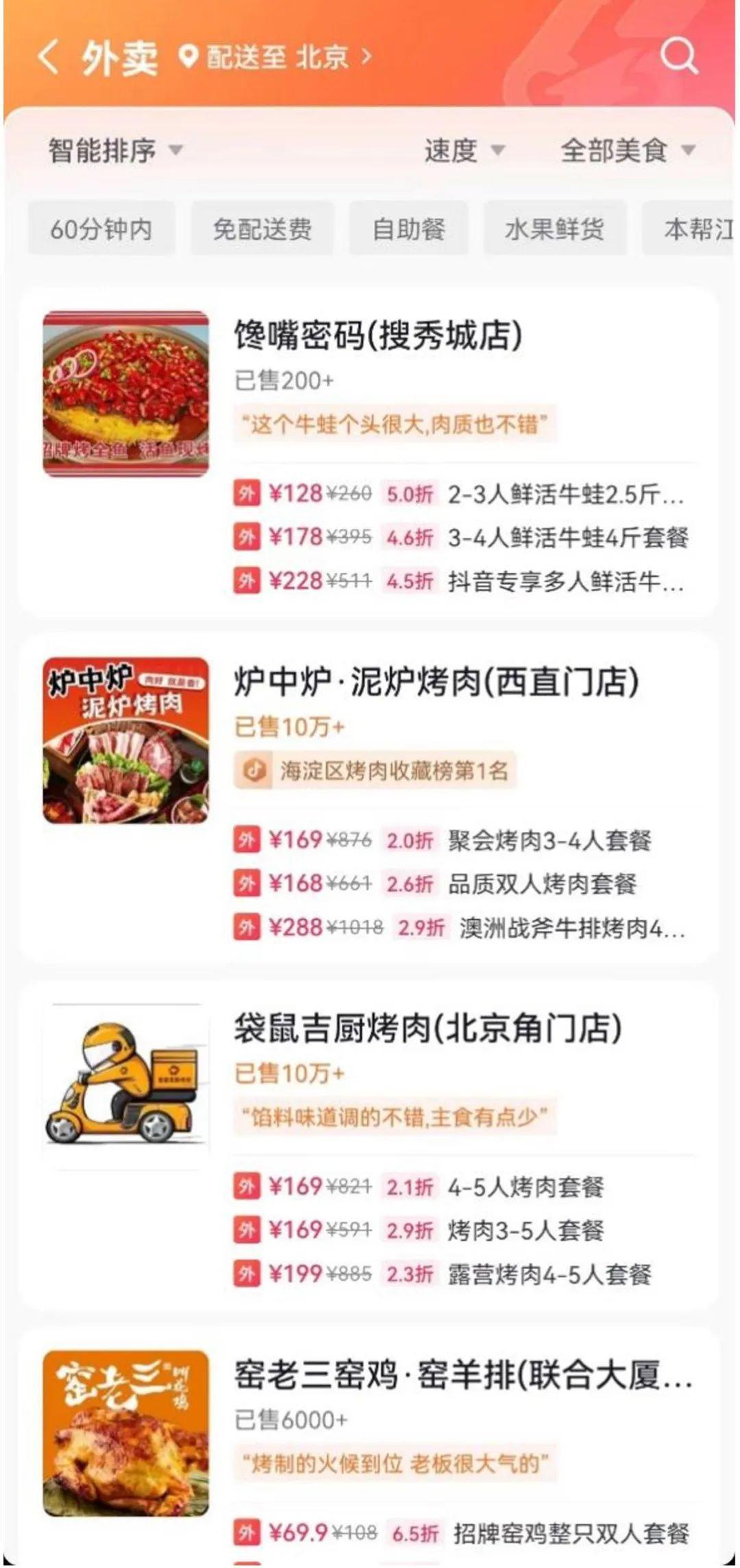 “美团属于严防死守,投入很大,不惜让利抢市场,但这种高营销成本、高打折成本、高配送成本,最终不可持续,况且美团的现金流也拼不过抖音。”抖音服务商仓藤传媒CEO詹逸夫说道。
