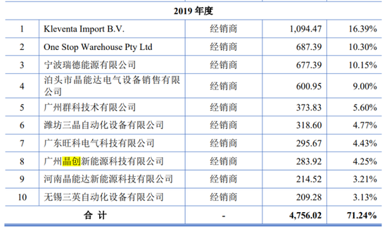 事实上,早在2019年,晶创能源就成为了三晶股份第八大经销商,对应的销售金额为283.92万元。