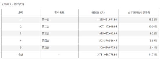 鹏辉能源2022年年报显示,鹏辉能源向第四大客户、第五大客户的销售金额分别为5.03亿元、3.09亿元。这与三晶股份在招股书中披露的采购金额3.21亿元分别差了1.82亿元、1151万元,均有较大差距。
