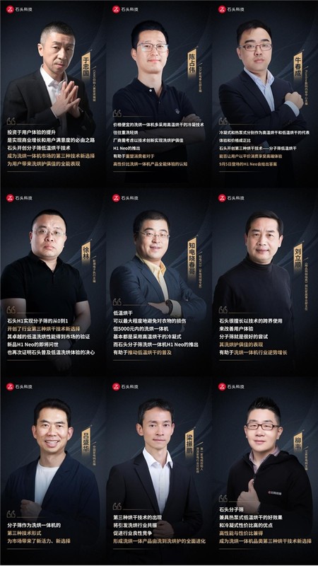 石头开创的第三种烘干技术也得到行业大咖的高度认可,“石头分子筛兼具热泵式低温烘干效果好和冷凝式性价比高的优点,高性能与性价比兼得,成为洗烘一体机品类第三种烘干技术新选择”、“石头H1实现分子筛的从0到1,开创了行业第三种烘干技术新选择,其卓越的低温洗烘性能得到市场的验证,新品H1 Neo的即将问世,也再次证明石头普及低温洗烘体验的决心。”