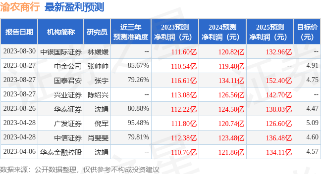 中泰证券股份有限公司戴志锋,邓美君近期对渝农商行进行研究并发布了研究报告《详解渝农商行2023年半年报:业绩边际持续向好;万亿级产业集群可期》,本报告对渝农商行给出增持评级,当前股价为3.85元。