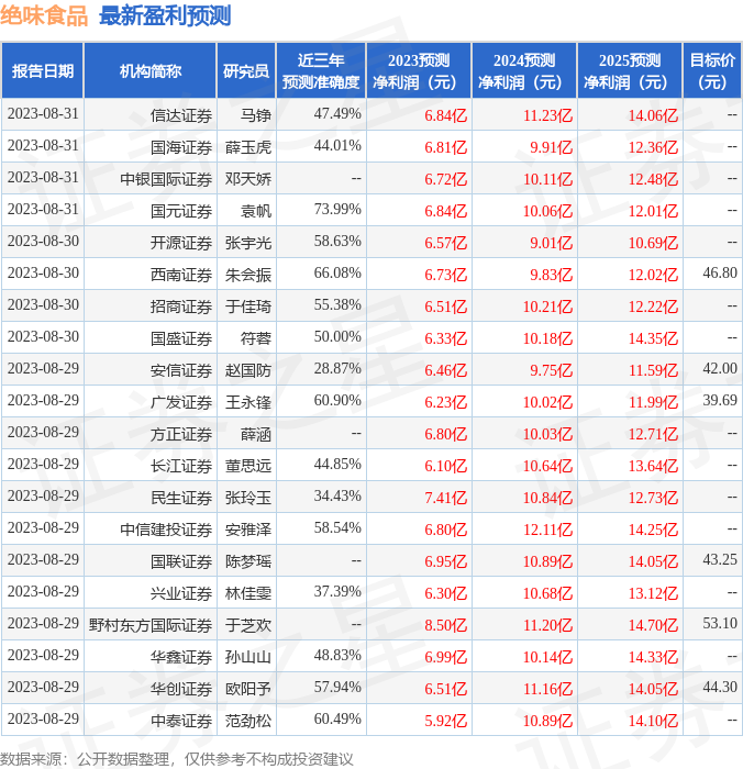 最新盈利预测明细如下:
