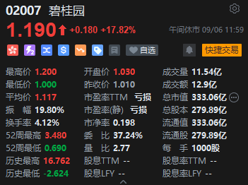碧桂园涨近18%。消息面上,碧桂园在9月5日完成了两笔合计2250万美元的境外债票息的支付,继续保持仍未实质性违约的状态。业内人士表示,随着市场企稳回升,部分企业债务重组出现重大进展,销售数据明显回暖,港股内资地产股或迎来估值重构。