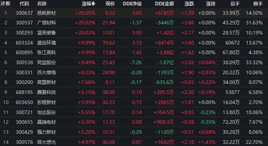 具体看,截至9月6日上午收盘,光刻胶板块持续走强,涨幅居首达4.26%。其中,多只概念股集体涨停,扬帆新材、广信材料、蓝英装备等概念股均达20CM涨停,盛剑环境、张江高科等个股也纷纷涨停。