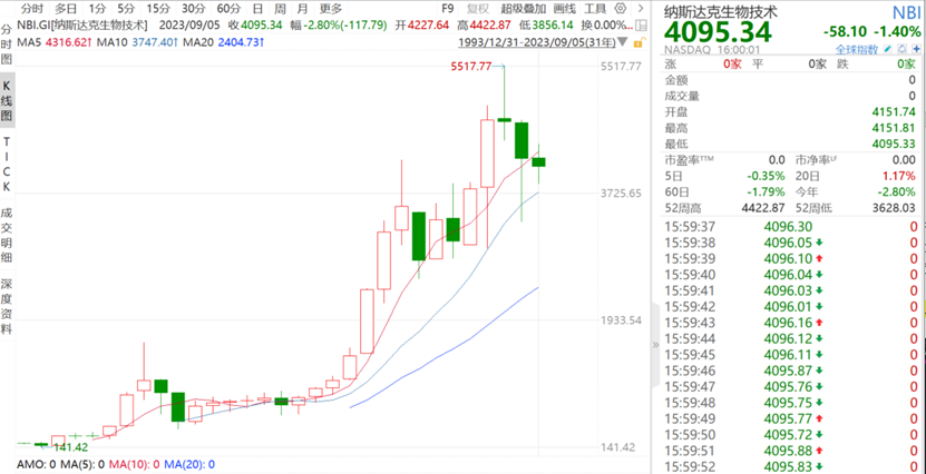 从估值上看,截至9月5日,纳指生物科技板块最新PE已回调至16.27倍。