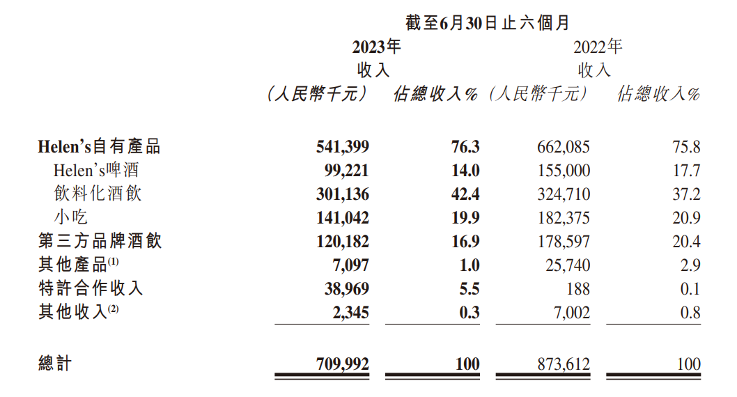 针对营收下滑,海伦司在财报中分析指出,由于特许合作酒馆占比提高,而来自该门店的收入以其门店营业额的一定比例计算,故上半年营收较去年同期的8.74亿元下降18.7%。