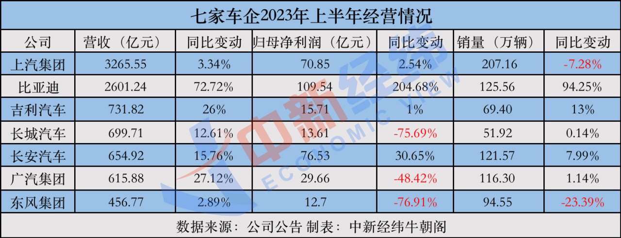 财报显示,今年上半年,上述车企都实现了不同程度的营收增长,不过在盈利方面却“有人欢喜有人忧”:比亚迪、长安汽车增速明显,广汽集团的归母净利润出现腰斩,长城汽车和东风集团的同比跌幅超过七成。