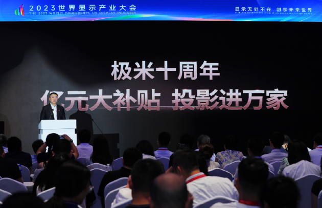 主题会现场,极米科技董事长钟波表示今年是极米成立十周年,极米计划在十周年庆典之际启动亿元回馈计划,用一亿元真金白银补贴产品价格,回馈粉丝十年厚爱。