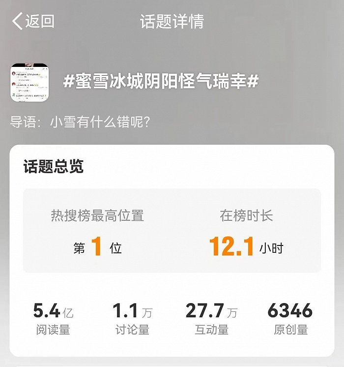 不过,舆论焦点逐渐部分跑偏,最终落在了从未参与这场狂欢的蜜雪冰城身上。