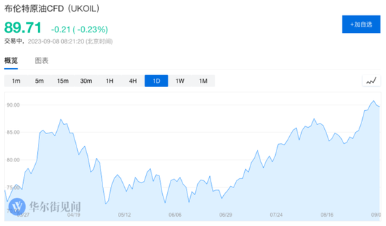 本周二,沙特和俄罗斯将自愿减产的期限延长至今年12月底,沙特自愿减产100万桶/日,俄罗斯自愿减产30万桶/日,这促使油价一度飙升至每桶90美元以上,为去年11月以来首次。此前,几个OPEC+产油国已于4月达成减产协议,减产协议将持续到2024年底。