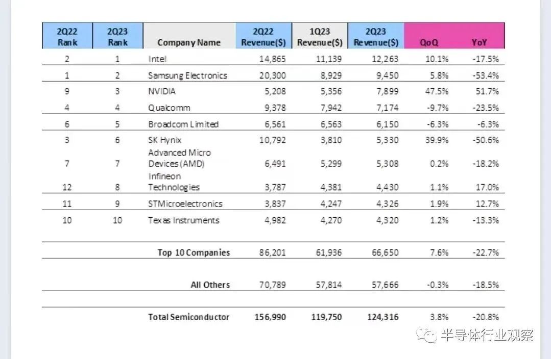 根据最新的 Omdia 竞争格局跟踪报告,在连续五个季度收入下降之后,半导体行业在 2023 年第二季度扭转了颓势并实现了收入增长。