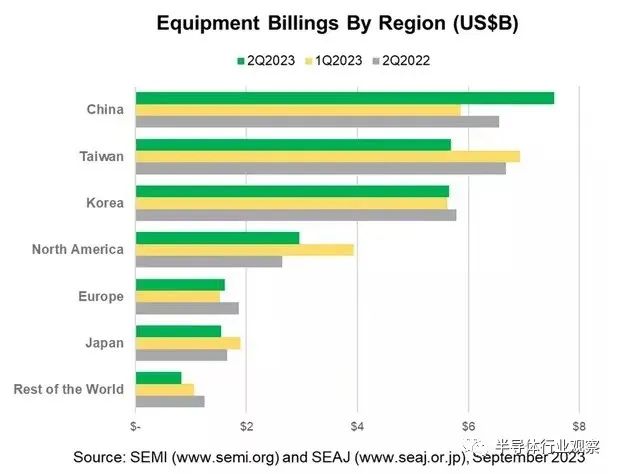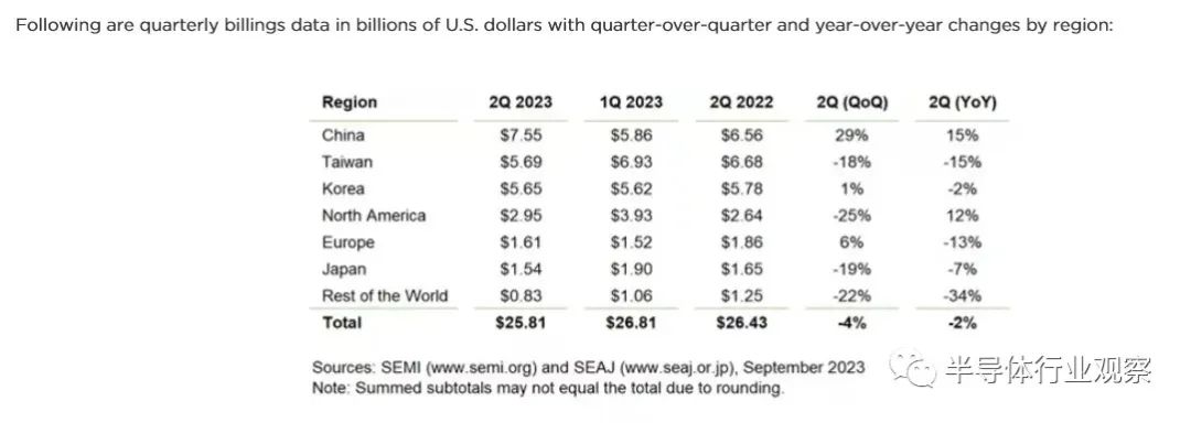 据SEMI最新的报告显示,2023年第二季度(2Q2023),全球半导体设备营业额同比下降2%至258亿美元,而环比下滑为4%。