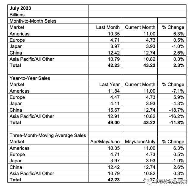 SIA 总裁兼首席执行官 John Neuffer 表示:“今年全球半导体市场经历了温和但稳定的月度增长,7 月份的销售额连续第四个月增长。” “与去年相比,全球销售额仍然下降,但 7 月份的同比降幅是今年迄今为止的最小差距,这为我们对 2023 年剩余时间及以后的前景感到乐观提供了理由。”