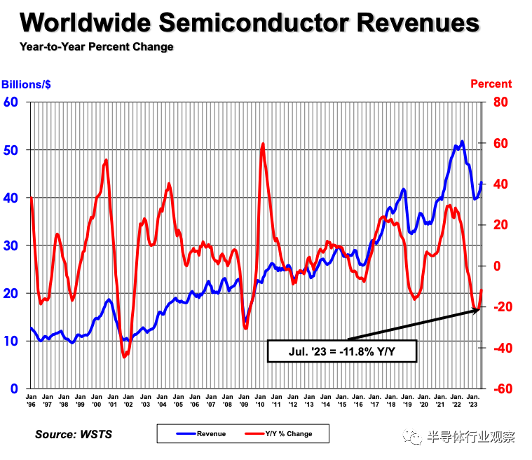 全球半导体销售:环比增长2.3%,同比下降11.8%
