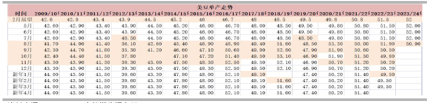 从历史数据看,美国农业部每年在2月份的展望报告中往往给出基于正常天气条件假设的趋势单产。此后,USDA的5月至7月供需报告基本延用2月展望报告中美豆单产的预估数据。8月至11月的供需报告,USDA往往会根据大豆的生长情况、调研情况、收获情况等因素对美豆单产预期进行调整。随着美豆收获完成,12月至次年4月,USDA通常对美豆单产的调整概率以及幅度较小,但也存在这例外情况。