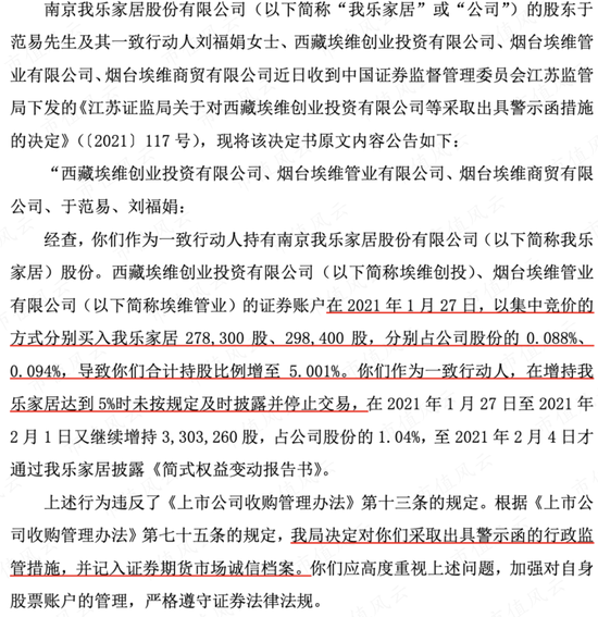 2023年9月7日中午,证监会突然对我乐家居的股东于范易先生及其一致行动人刘福娟女士、烟台埃维管业有限公司、西藏埃维创业投资有限公司、烟台埃维商贸有限公司进行立案调查。