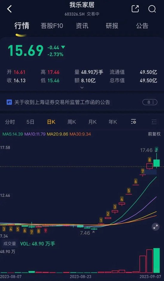 随着地产利好政策的频频出台,作为地产上游的我乐家居,8月25日之后连续出现8个涨停,成为A股最热门的股票之一。