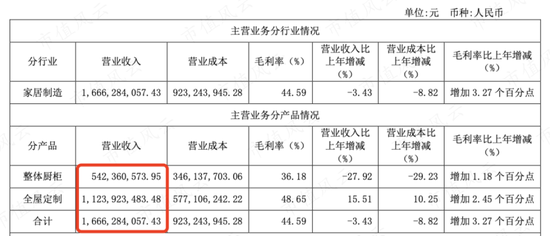 我乐家居是做整体橱柜和全屋定制家居设计的,2022年收入为16.66亿,其中整体橱柜产品为5.42亿,全屋定制收入为11.24亿。