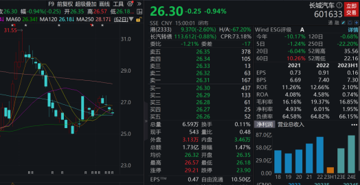 公司持续加码电动转型。东吴证券表示,哈弗猛龙在成都车展开启预售,完成新能源城市SUV+新能源越野SUV的双线产品布局,引领新能源越野SUV进入全民时代;魏牌首款高端新能源MPV高山DHT-PHEV开启预售,高山与蓝山组合为魏牌新能源大六/七座双旗舰,开启品牌向新向上之势。