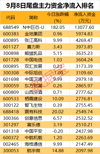 个股方面,近日上市新股N中巨芯-U尾盘资金流入1.31亿元,居首位。该公司专注于集成电路、显示面板等半导体行业所需的电子化学材料的研发、生产和销售,上市首日股价大涨182.1%。