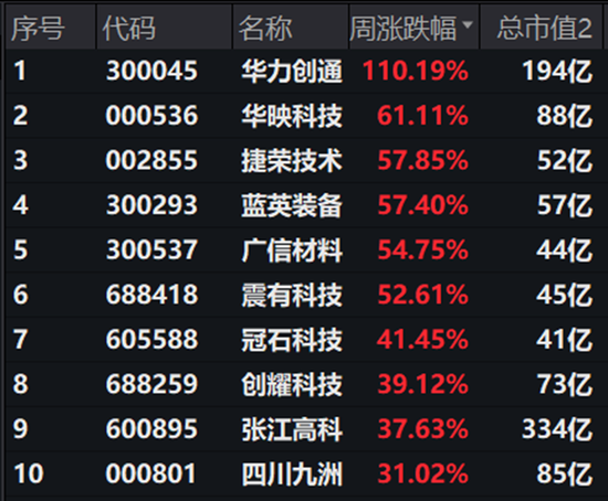 华为概念是本周(9月4日-9月8日)市场唯一主线,龙头华力创通(300045.SZ)短短五个交易日就翻倍。