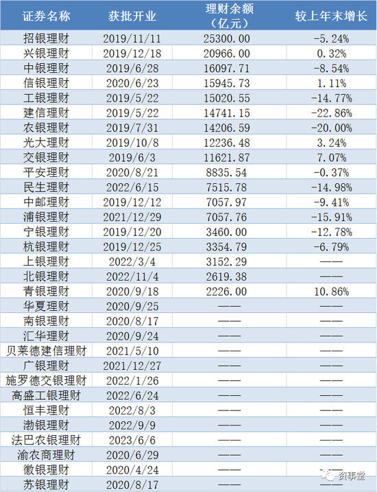 其规模排名也从第三名下滑至第六名,被中银理财、信银理财、工银理财所赶超。
