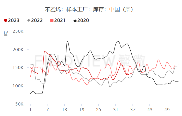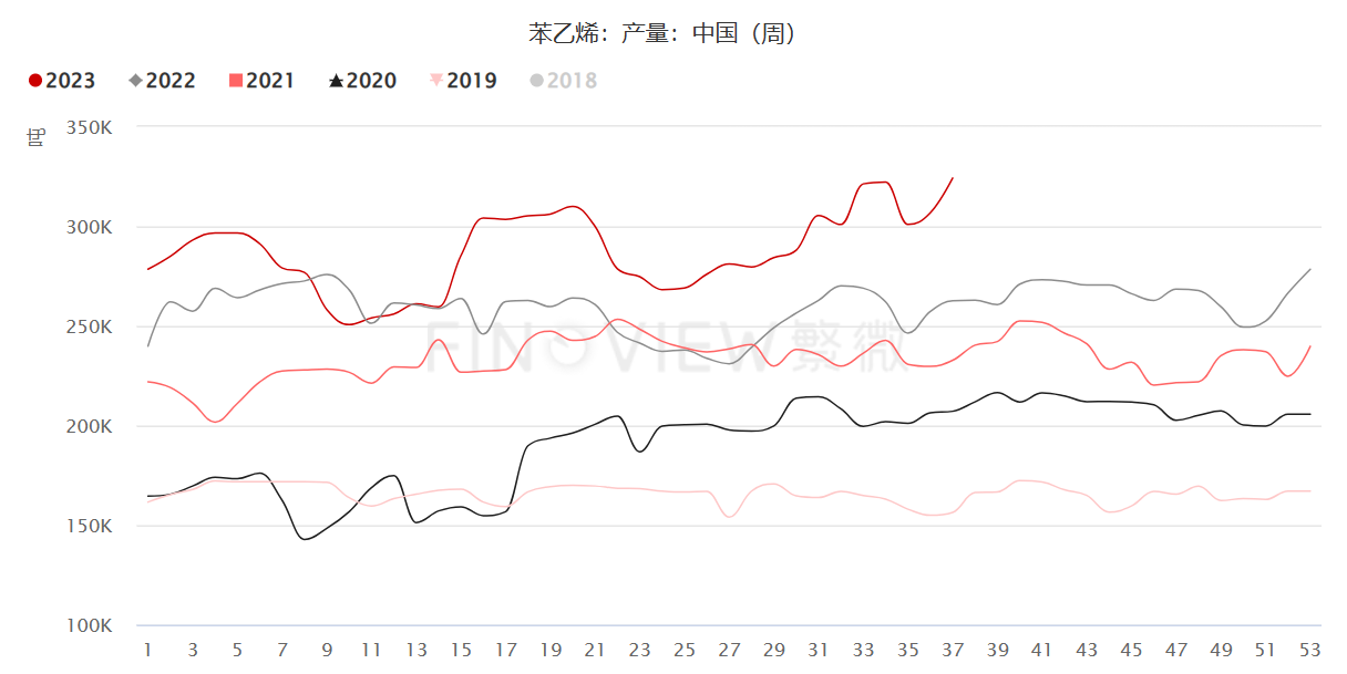 2、供应端来看,远端产量带来的供应压力尚存。产能扩张仍在加速,短期检修并未能改变周度产量持续走高的格局。数据显示,截至9月8日当周,苯乙烯周度产量为32.4万吨,同比增加23.46%,环比增加5.67%。